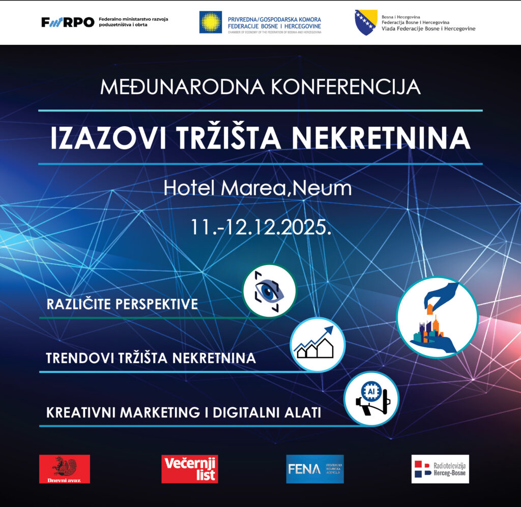 Privredna/Gospodarska komora Federacije Bosne i Hercegovine organizuje dvodnevnu međunarodnu konferenciju „OTPAD – RESURS ZA RAZVOJ CIRKULARNE EKONOMIJE“, koja će se održati 8. i 9. decembra...