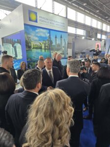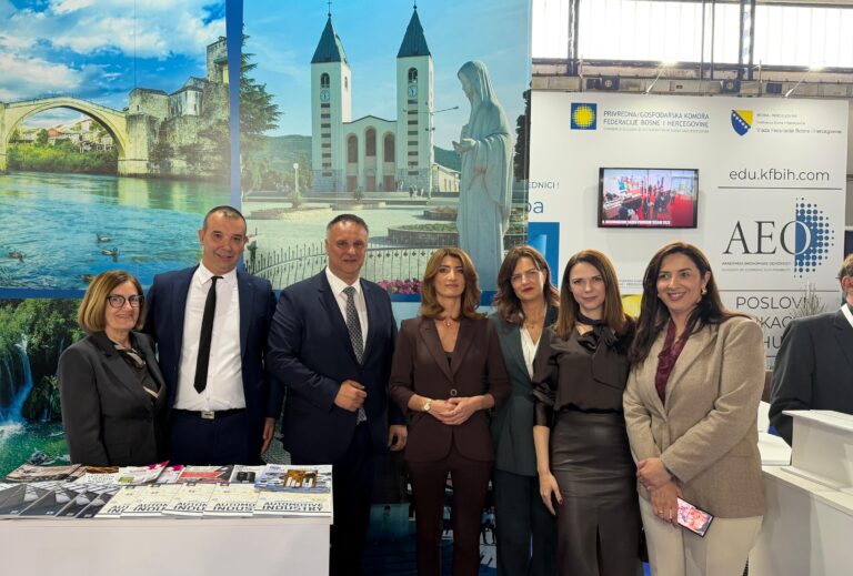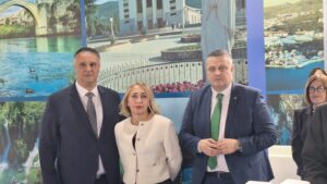 Na Međunarodnom sajmu gospodarstva Mostar 2026, štand Gospodarska komora Federacije BiH posjetila je visoka delegacija predvođena zamjenikom premijera Vlade Federacije BiH, Vojinom Mijatovićem te federalnom ministricom okoliša i turizma Nasihom Pozder i federalnom ministricom prometa i komunikacija Andrijanom Katić.