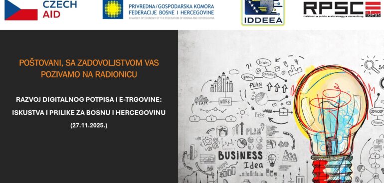 Sa zadovoljstvom Vas pozivamo da sudjelujete na radionici pod nazivom „Razvoj digitalnog potpisa i e-trgovine: iskustva i prilike za Bosnu i Hercegovinu“, koja će se održati 27. studenog 2025. godine, u Mostaru, u prostorijama Privredne/Gospodarske komore Federacije BiH, Kneza Domagoja 12 (II kat) sa početkom u 10:00 sati. Radionica se organizira u okviru projekta Aid for […]