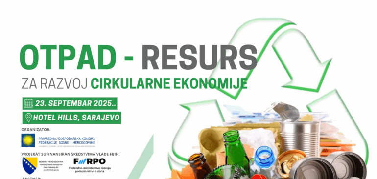 Bosna i Hercegovina stoji pred velikom prilikom da unaprijedi svoj ekonomski i ekološki razvoj kroz tranziciju ka cirkularnoj ekonomiji. U tom kontekstu, Privredna/Gospodarska komora FBiH organizuje konferenciju pod nazivom “OTPAD – RESURS ZA RAZVOJ CIRKULARNE EKONOMIJE U BIH”, koja će se održati 23. septembra 2025. godine u Hotelu Hills u Sarajevu. […]